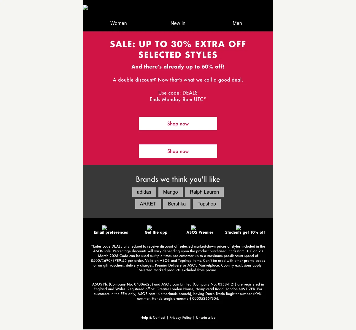 Toute l'année, Soldesduck s'engage à vous trouver les meilleures réductions et codes promo ASOS pour vous aider à économiser sur votre shopping ! Alors n'hésitez plus à nous rendre visite sur cette page pour utiliser votre code réduction sur votre prochaine commande.