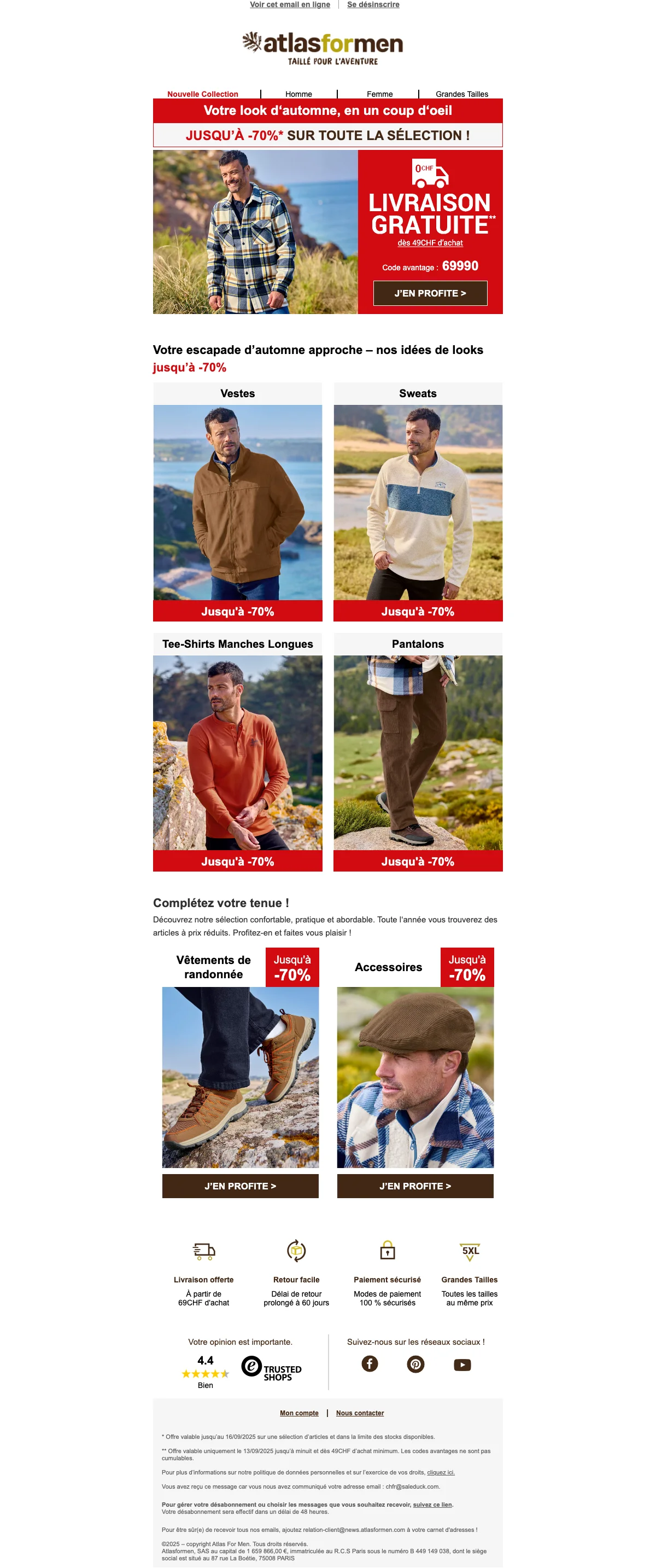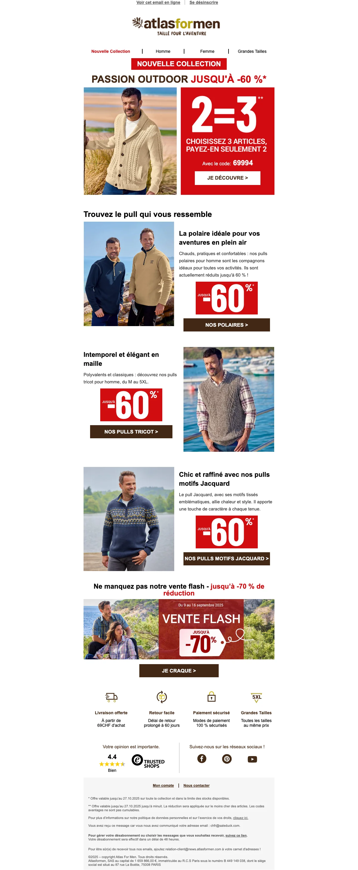 Atlas For Men offre VIP jusqu'à -65% sur votre dressing
