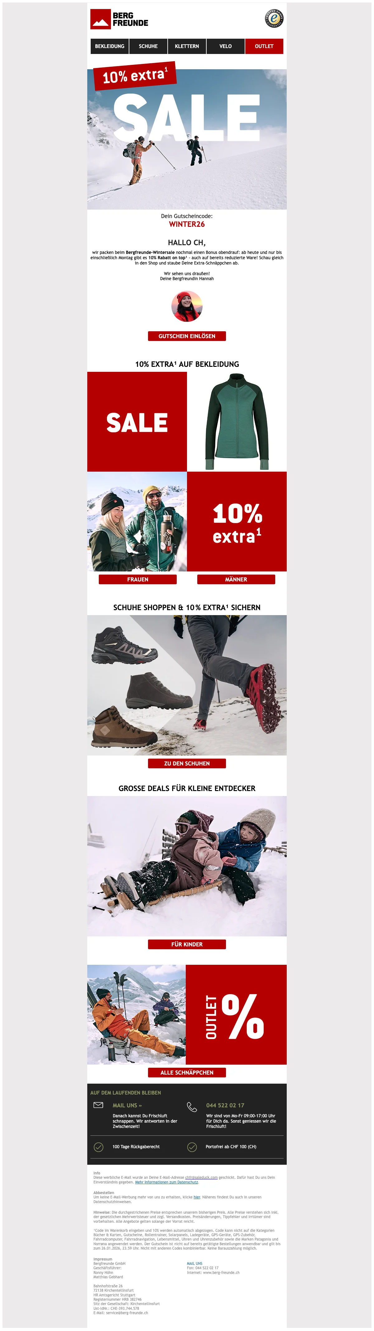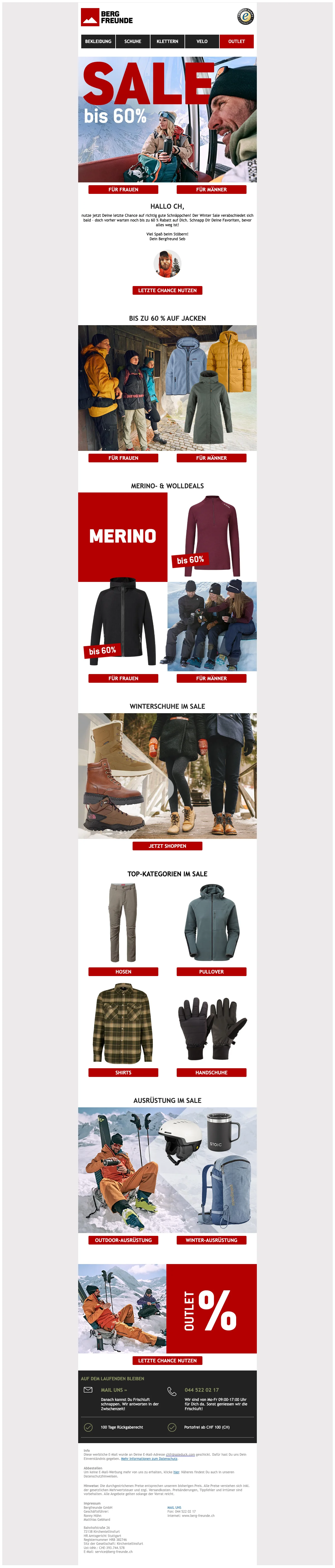 Profite du Wintersale avec des réductions jusqu'à 60% sur vestes, pantalons, sousvêtements et autres articles d'hiver. Trouve des modèles techniques à prix réduit pour les activités outdoor et économise sur l'équipement hivernal. Offre soumise à disponibilité et frais de port en sus.