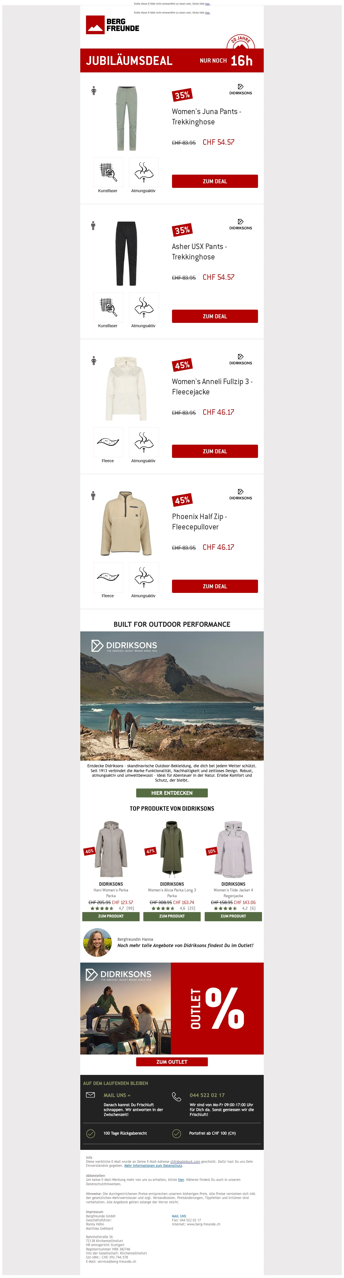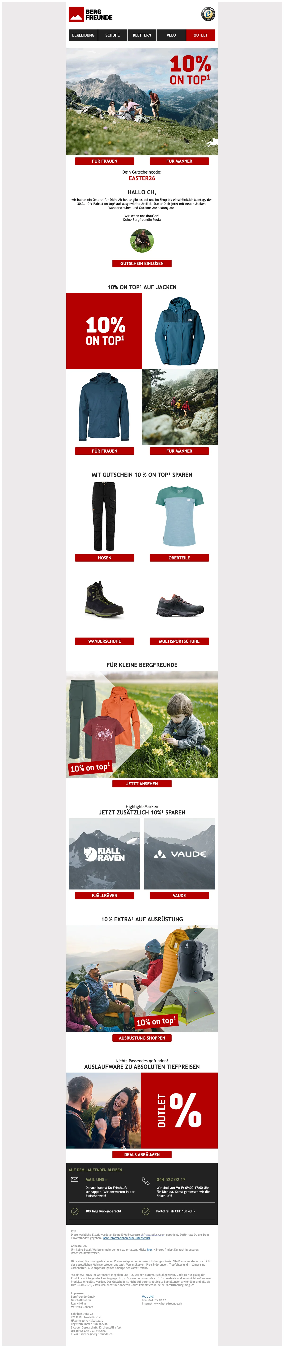Profite de cette offre incroyable et équipe-toi avec des vêtements de randonnée de qualité. Économise jusqu'à 20% sur les nouvelles collections de vêtements pour tes aventures en plein air. C'est le moment idéal pour renouveler ta garde-robe avec des pièces élégantes et fonctionnelles.