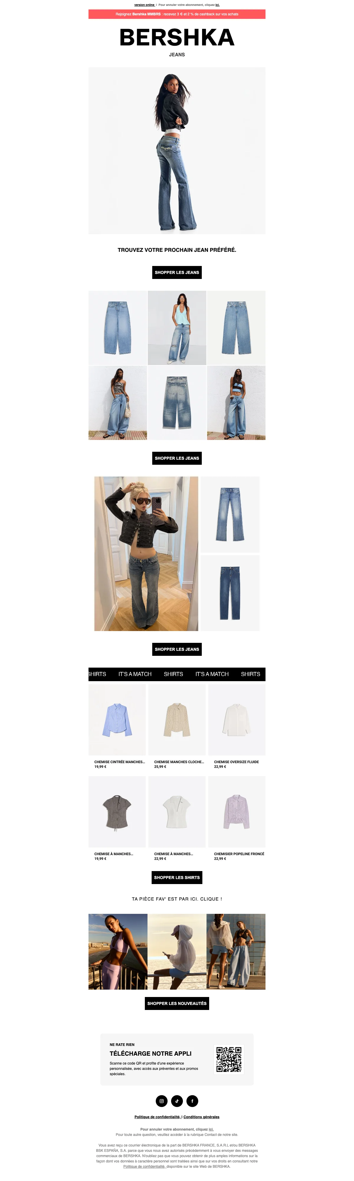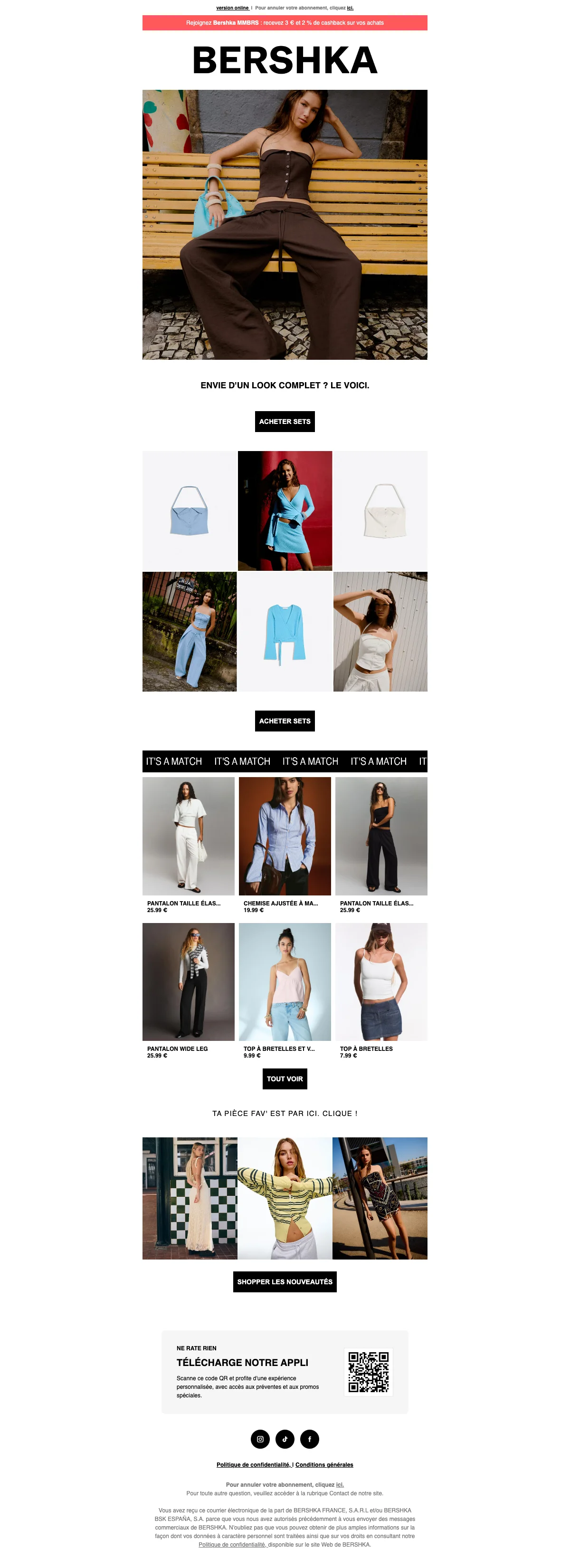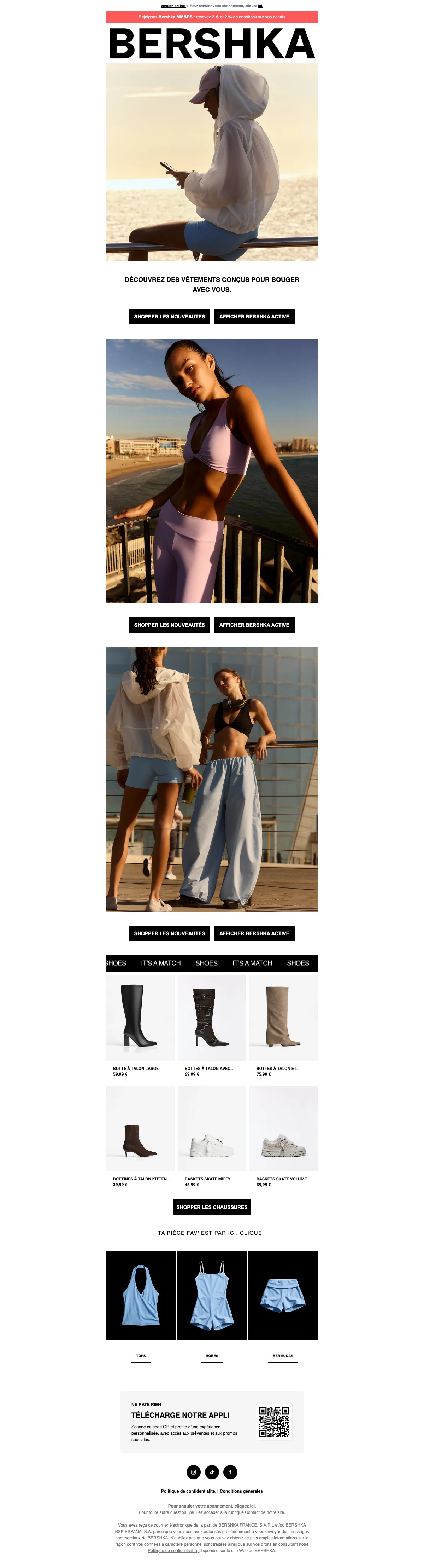 Nous surveillons en continu les offres de Bershka via le site officiel, les réseaux partenaires et les newsletters des boutiques en ligne. Les nouvelles promotions sont contrôlées automatiquement et manuellement afin d’en vérifier la validité.