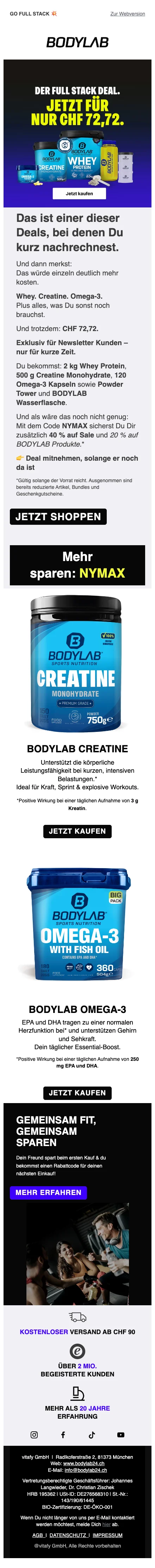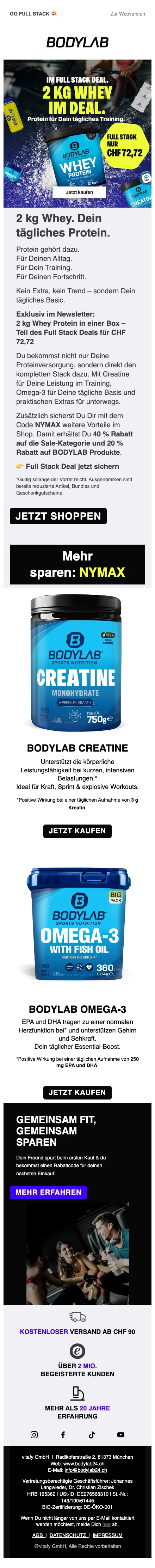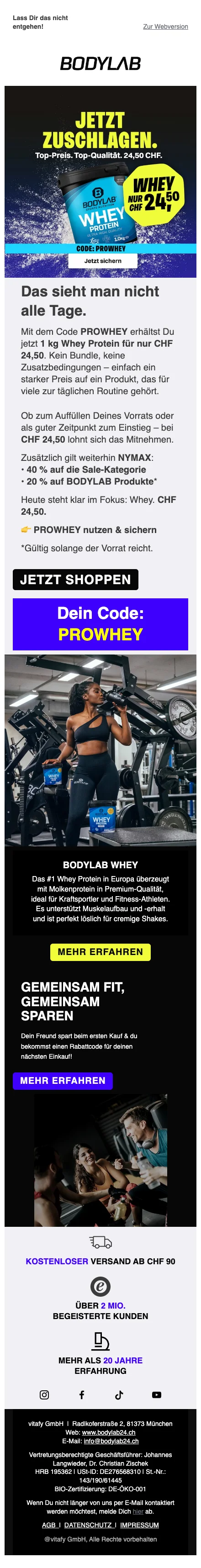 Bodylab 1 kg whey prix spécial CHF 24,50 offre limitée