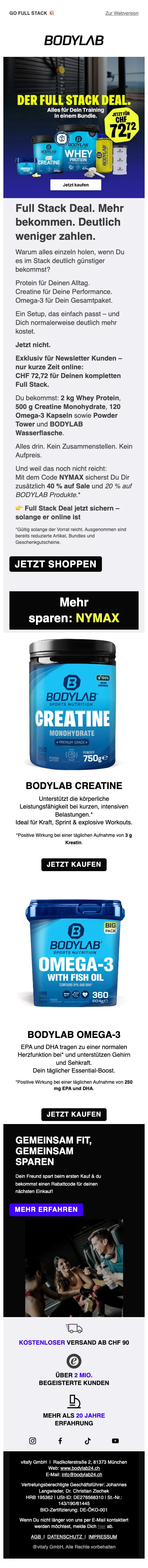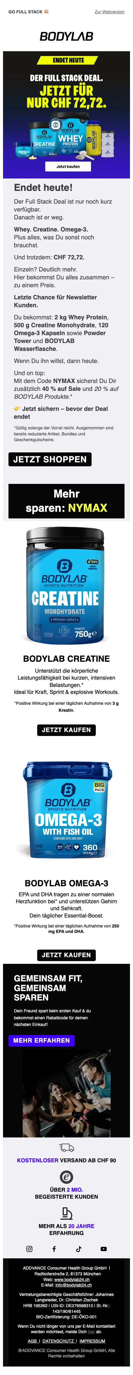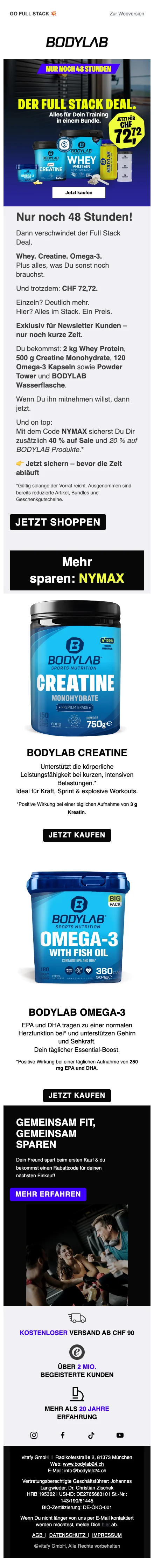 Bodylab 1 kg whey prix spécial CHF 24,50 offre limitée