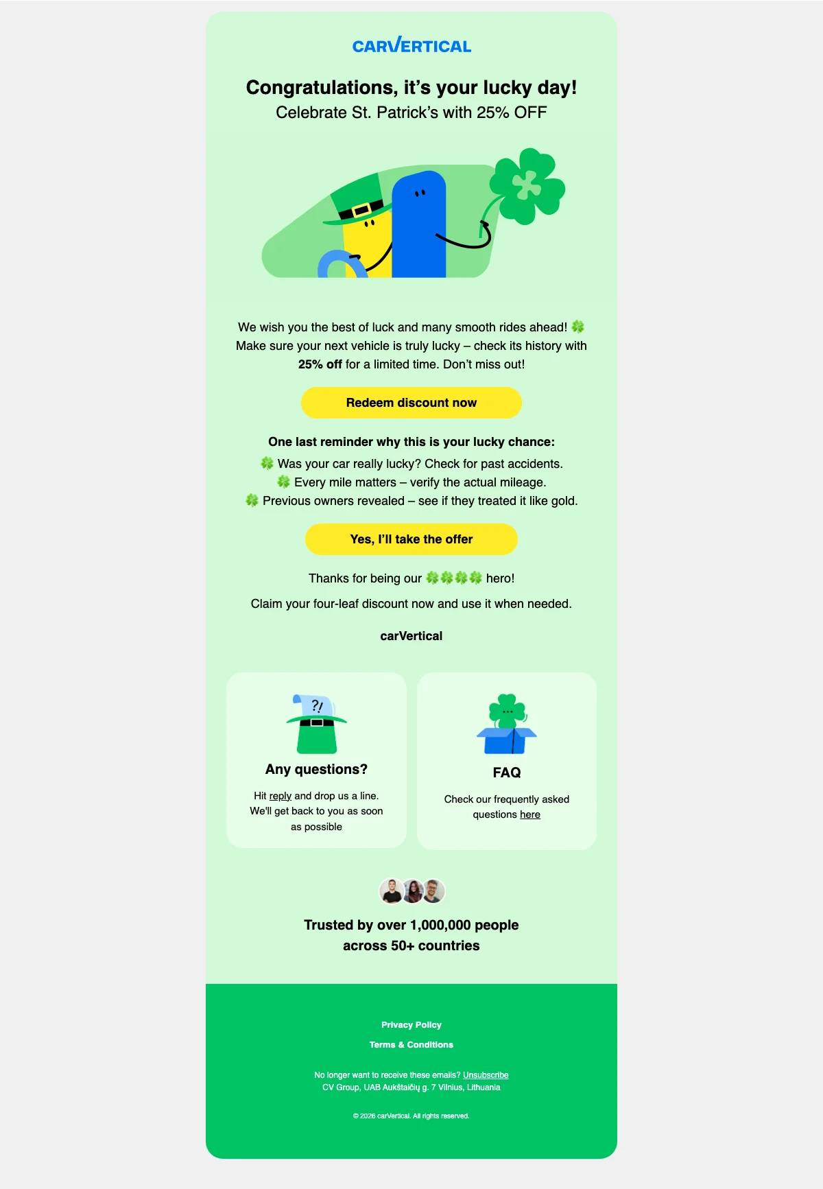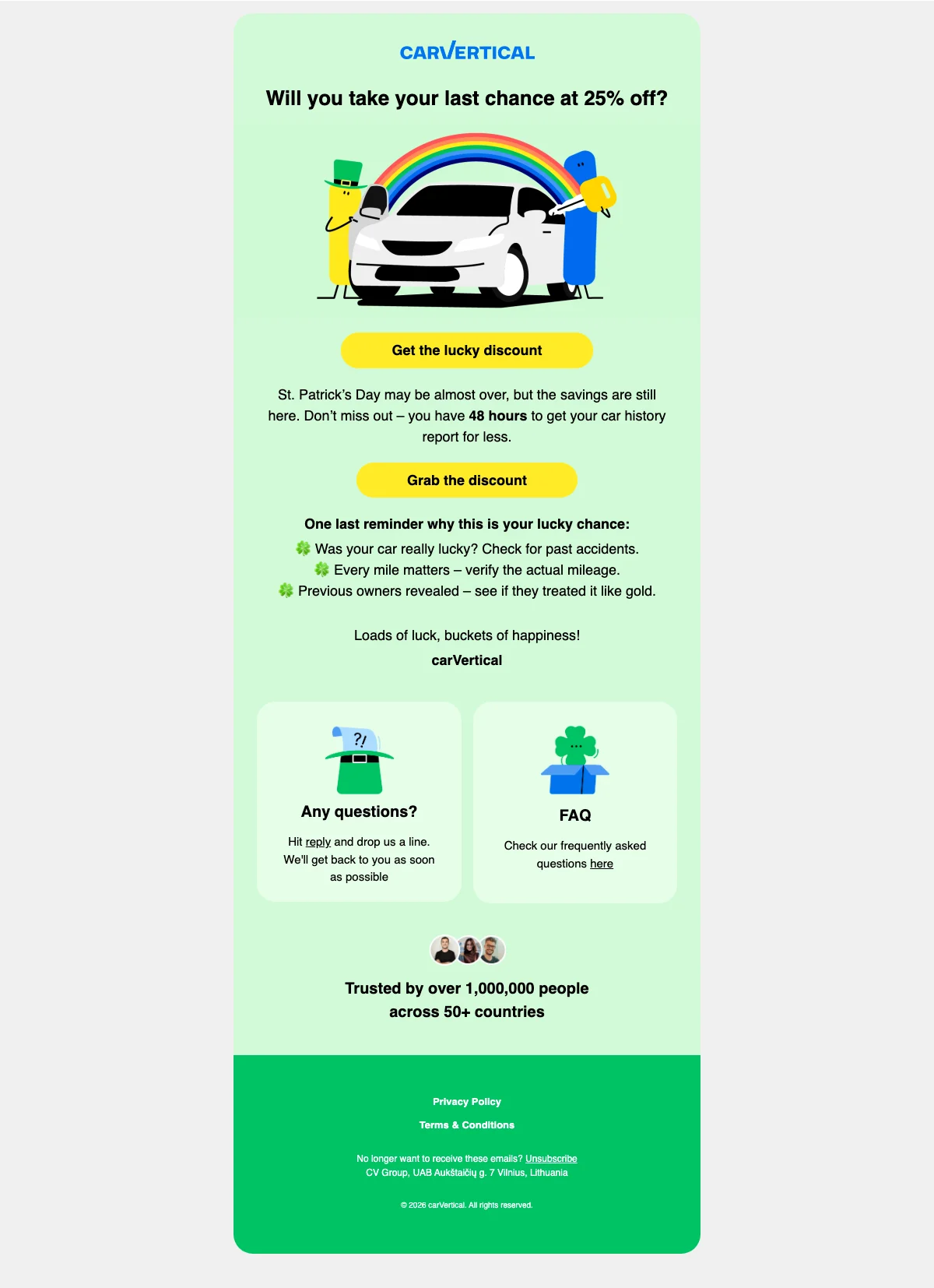 CarVertical Saint-Patrick rapport véhicule 25% de réduction anticipée