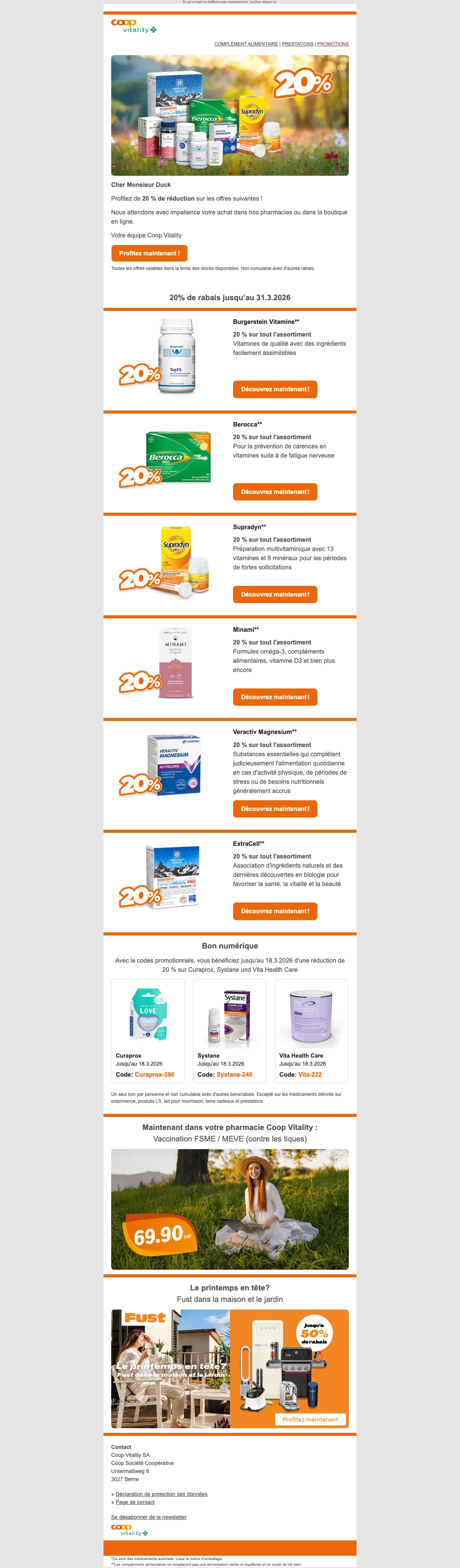 Coop Vitality Code promo 10% de réduction en ligne avec vitality26