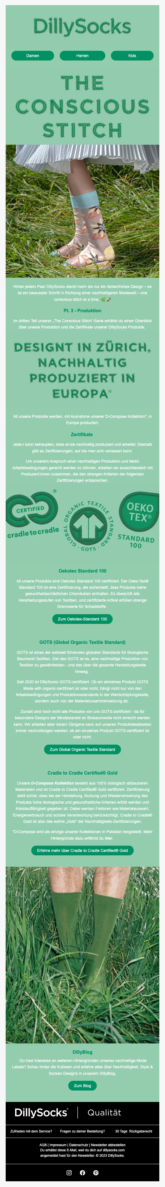 Les chaussettes sont fabriquées selon les normes Oeko-Tex® 100 et une grande partie est également certifiée GOTS, garantissant des produits durables et écologiques.