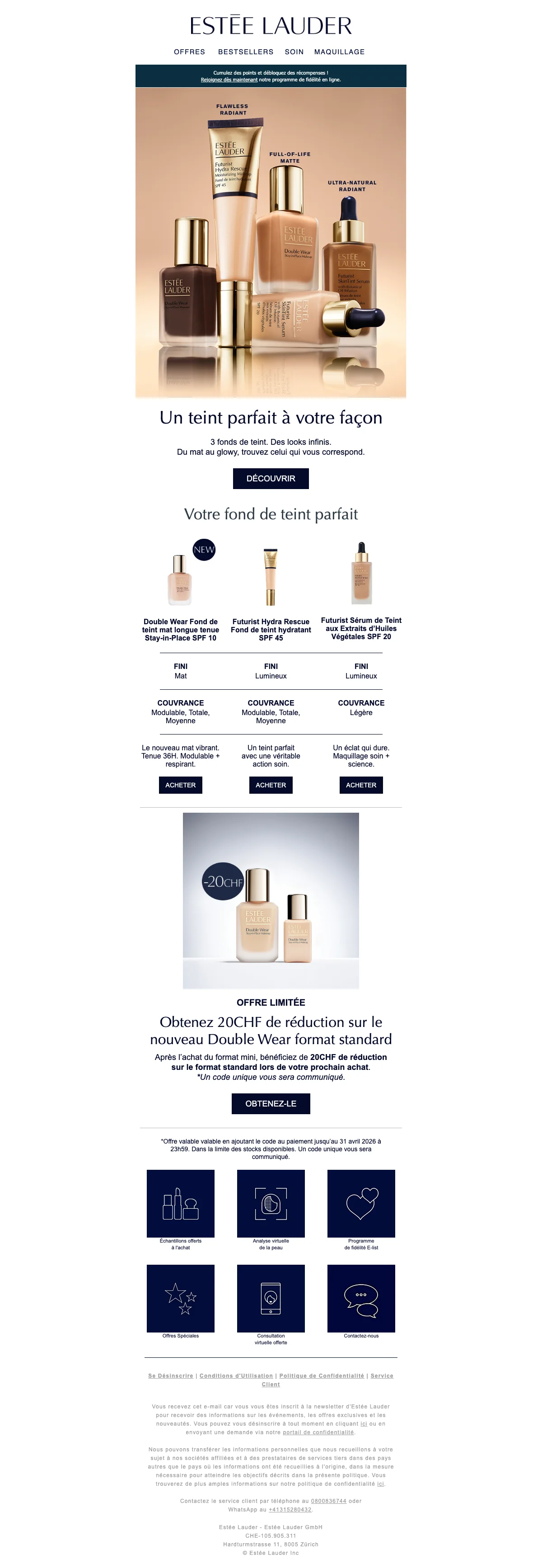 Estee Lauder ch : inscrivez-vous à la newsletter et recevez 10% de rabais sur votre 1er achat