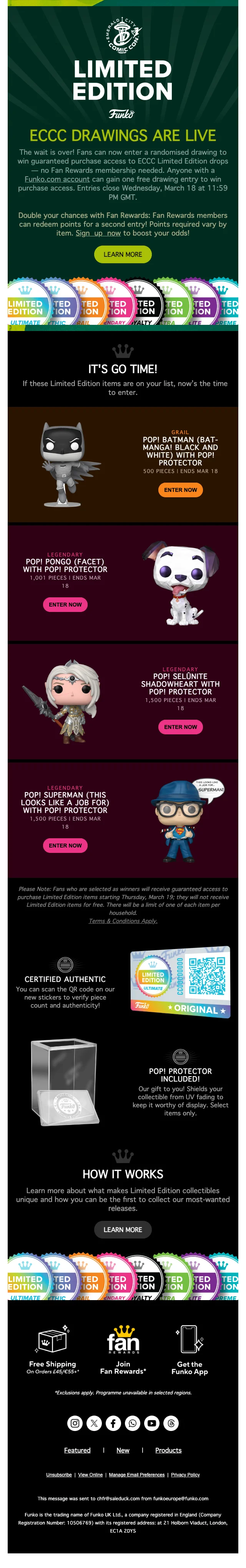 Rejoignez le canal WhatsApp de Funko Europe pour recevoir 10% de réduction sur votre prochaine commande de figurines. Il suffit de s'inscrire et d'envoyer un message pour activer l'offre!