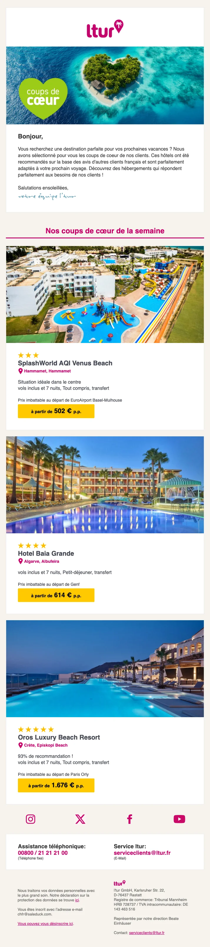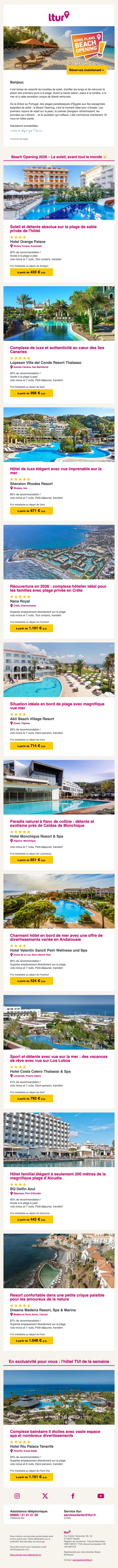 Nous surveillons en continu les offres de Ltur via le site officiel, les réseaux partenaires et les newsletters des boutiques en ligne. Les nouvelles promotions sont contrôlées automatiquement et manuellement afin d’en vérifier la validité.