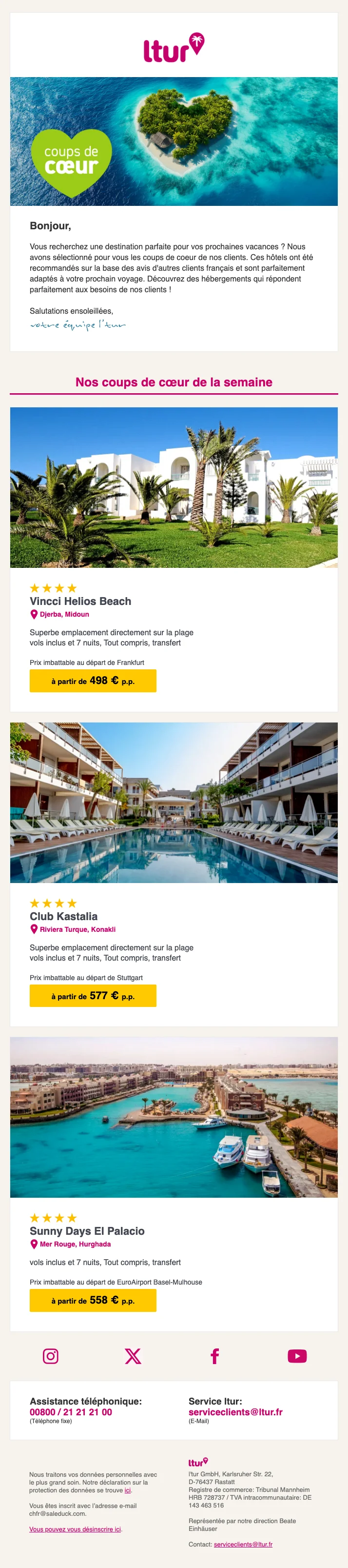 Découvrez des destinations populaires comme Égypte, Turquie, et îles Canaries. Offrez-vous un séjour parfait avec les meilleurs tarifs sur ltur.