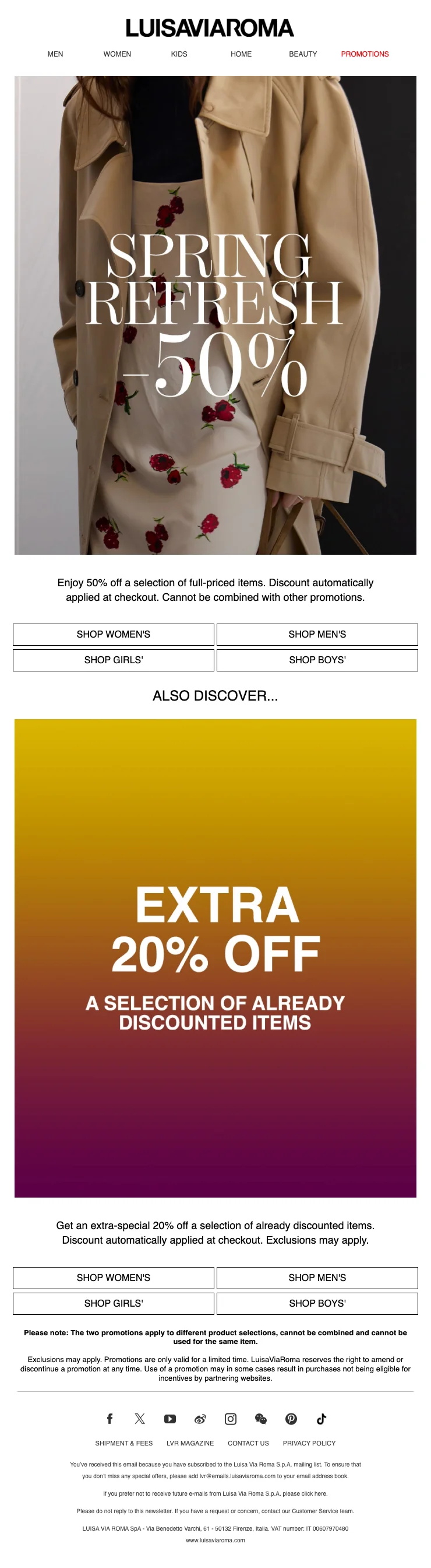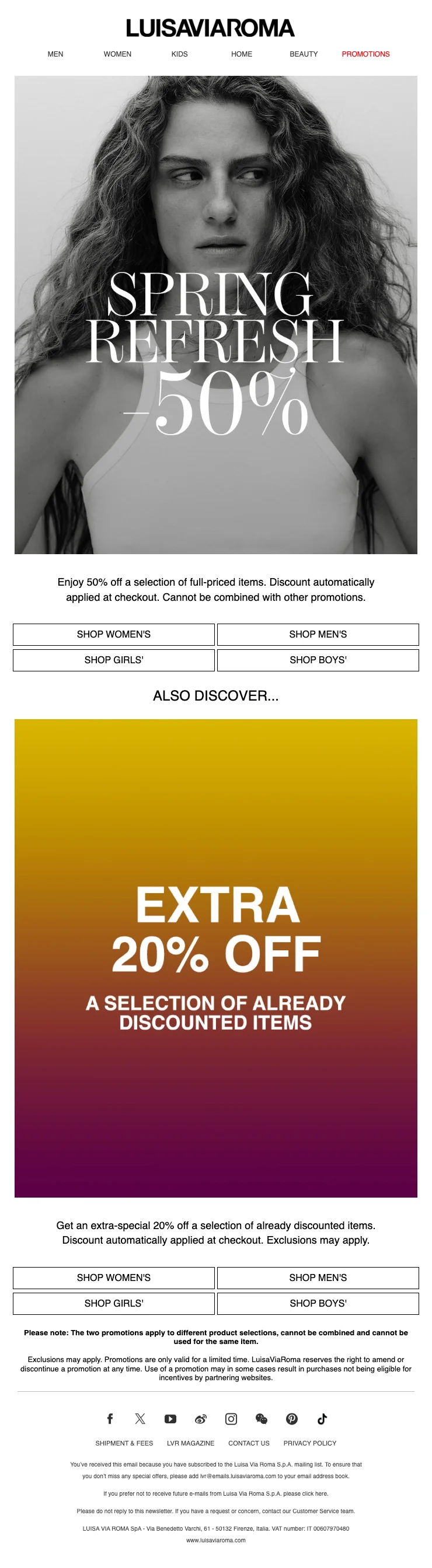 LuisaViaRoma articles plein tarif 50% réduction