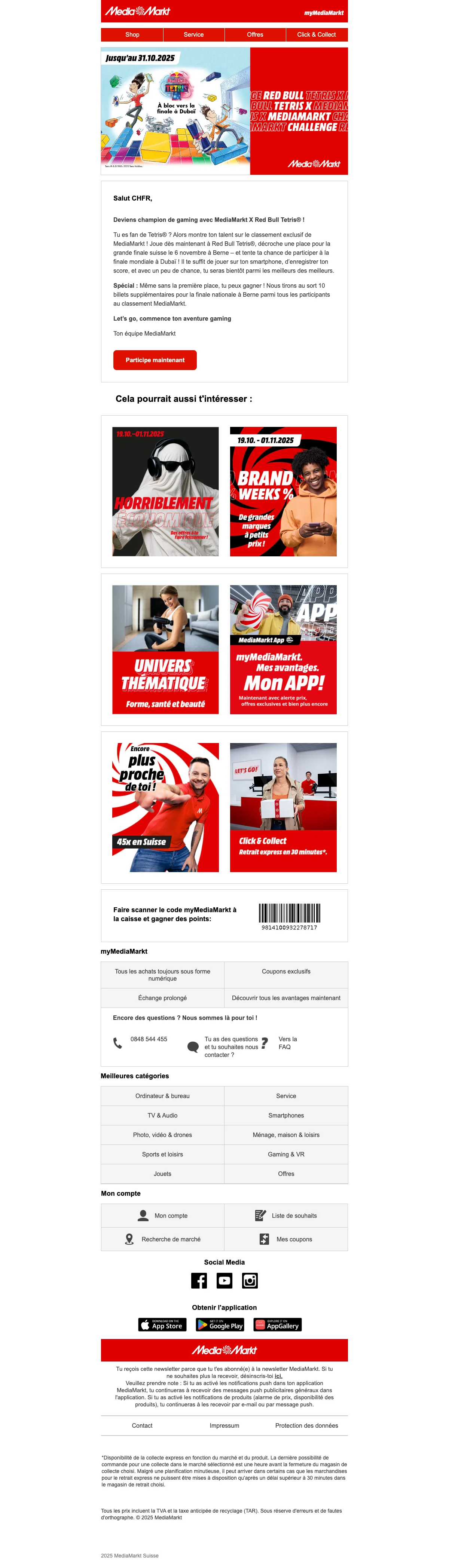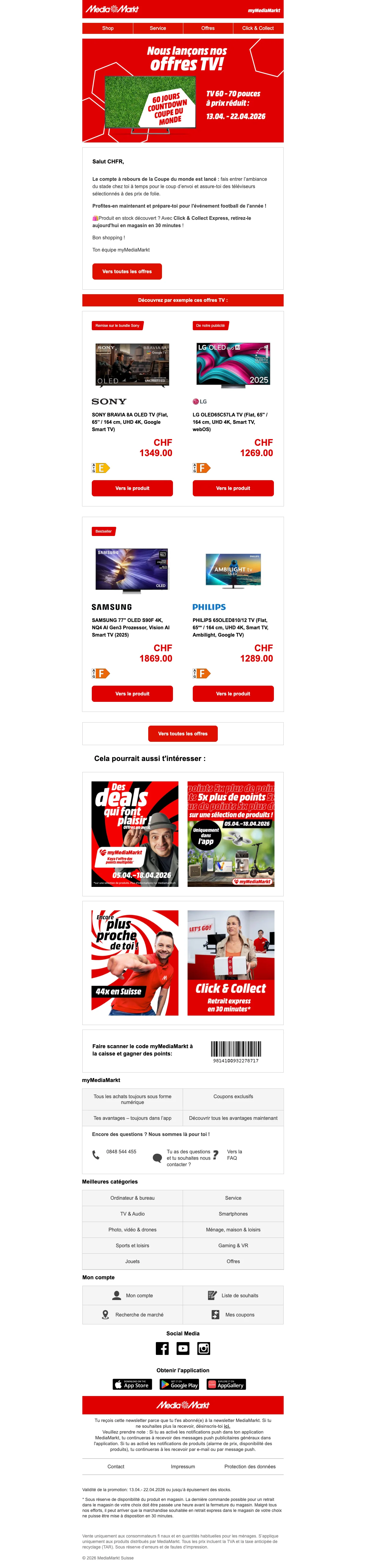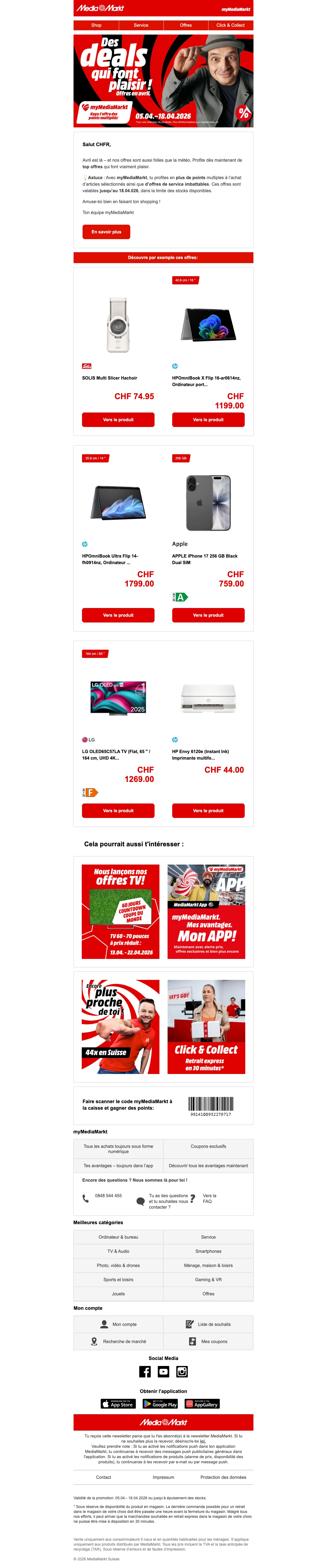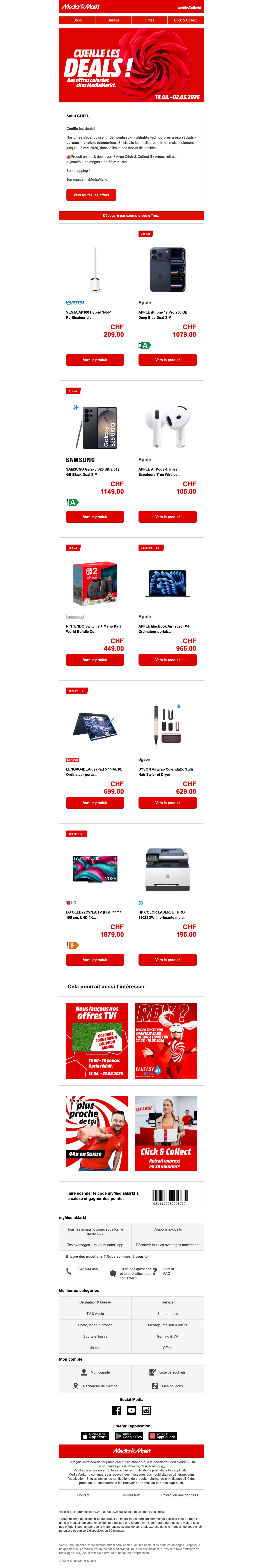 Media Markt est le 1er site Suisse e-commerce spécialisé dans l'électronique. Des milliers de produits high-tech se trouvent sur la boutique en ligne et des promotions sont disponibles toutes les semaines, pas de doute c'est ici que cela se passe !