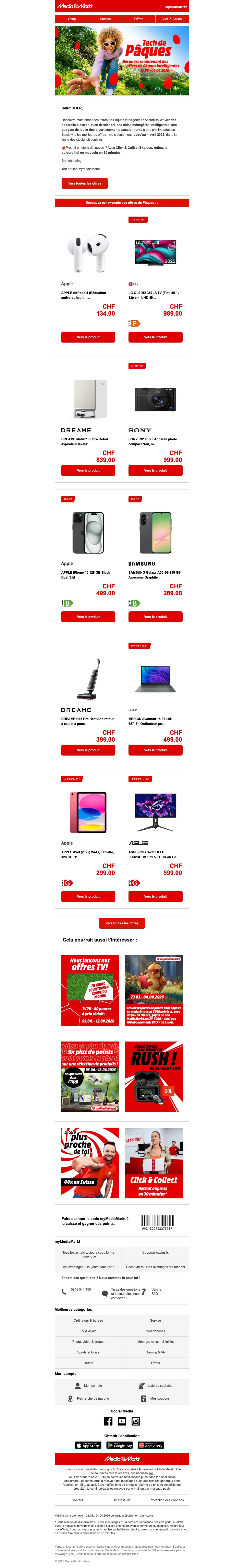 MediaMarkt Pâques électronique - prix réduits, offres jusqu'au 04-04-2026