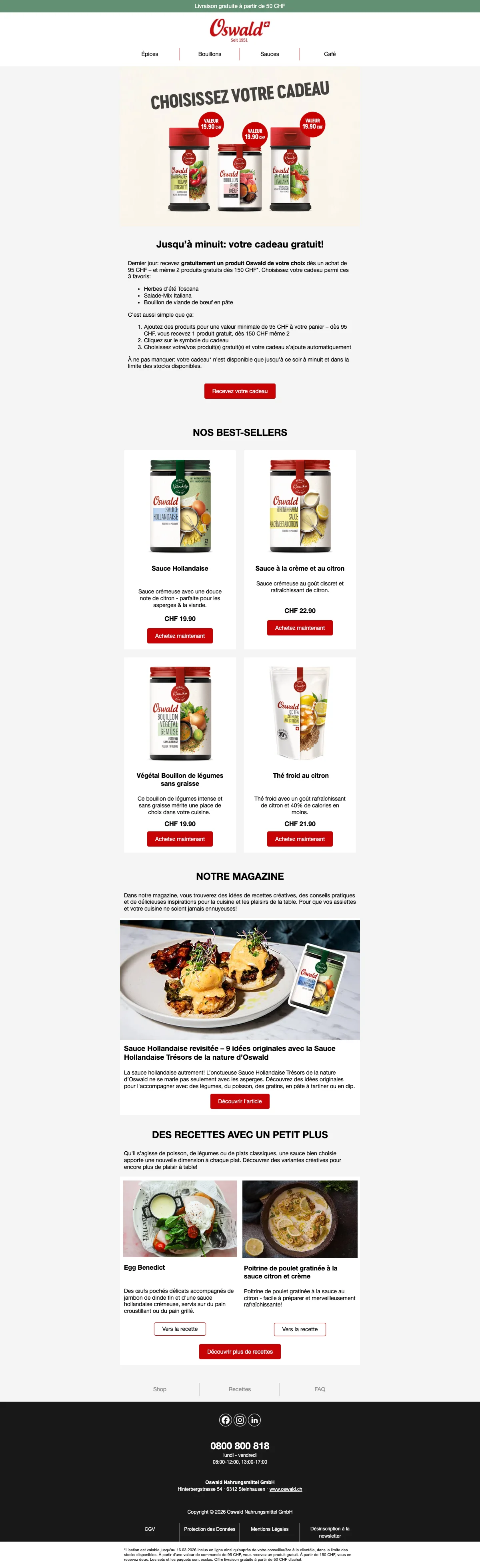Profitez des promotions et code promo Oswald présents sur soldesduck.ch pour bénéficier des meilleurs prix sur vos produits préférés de la marque suisse.