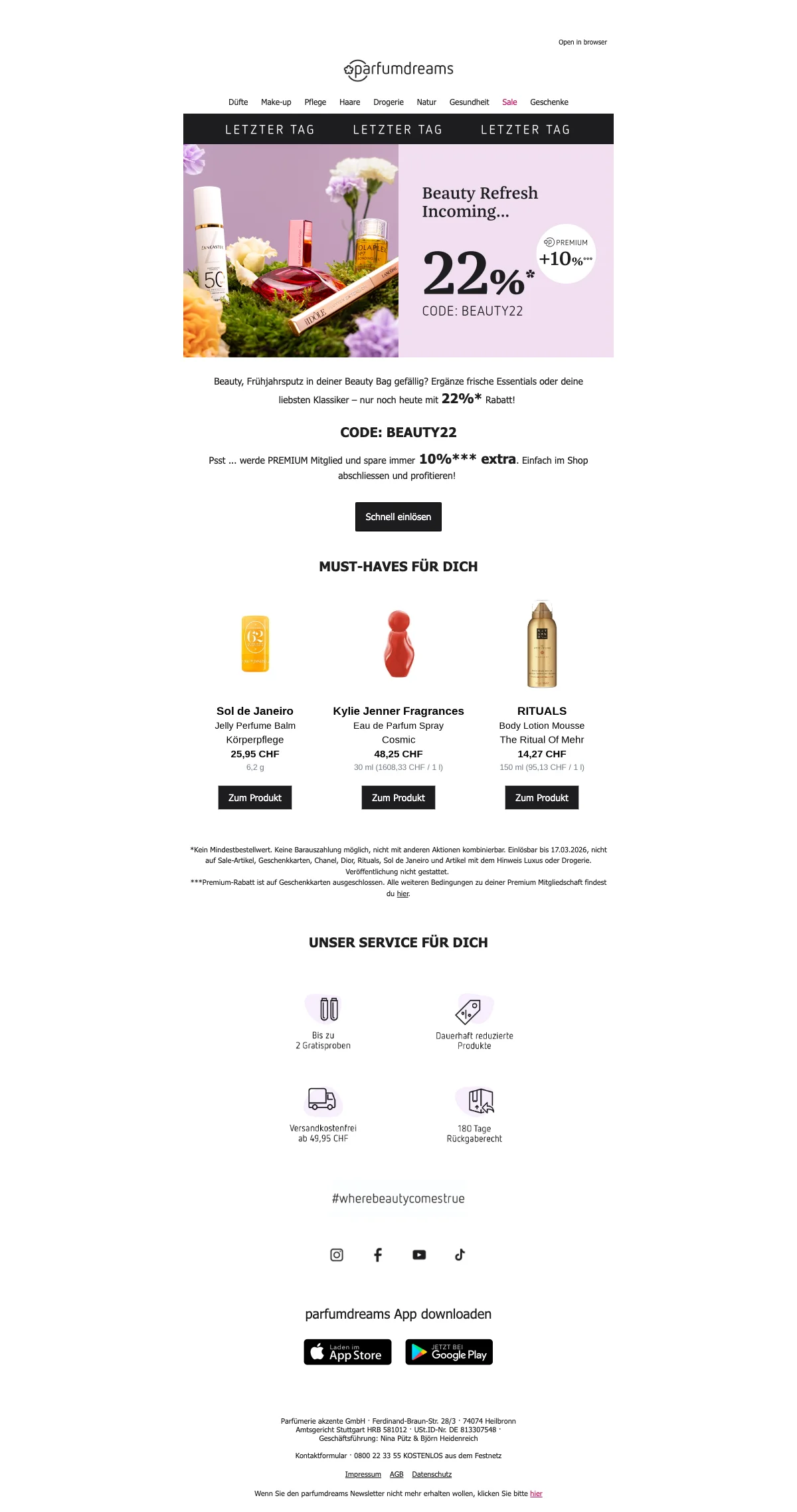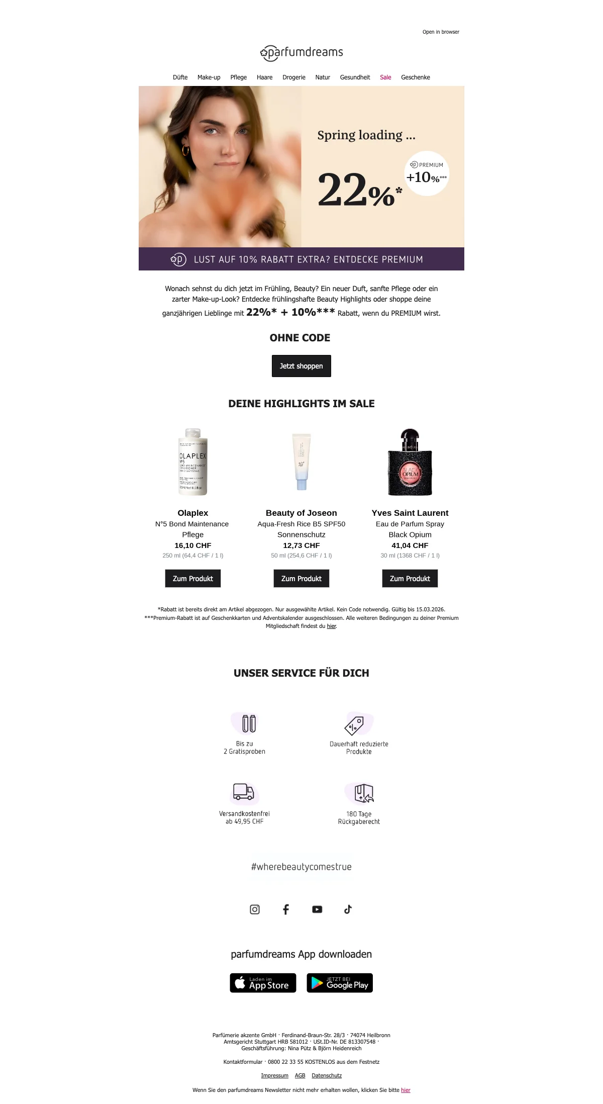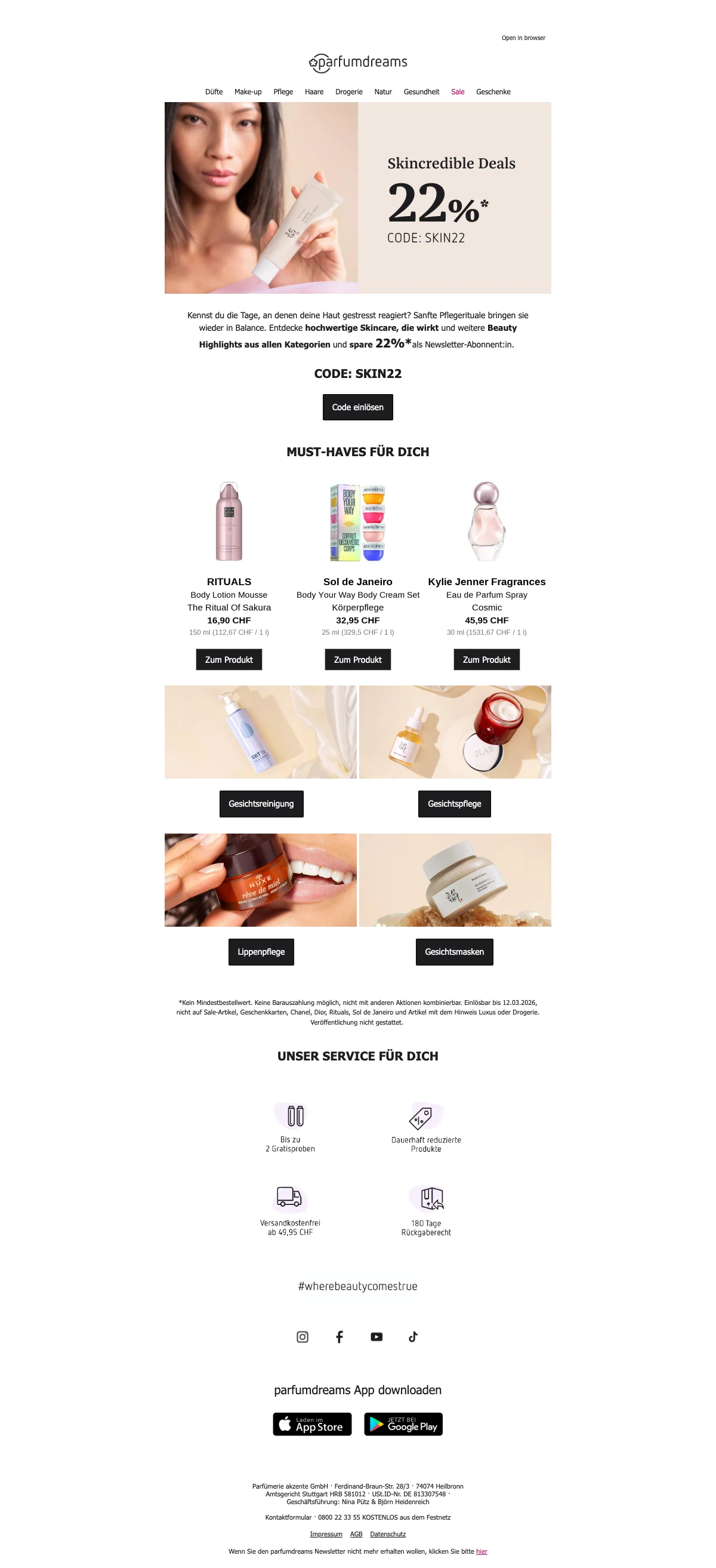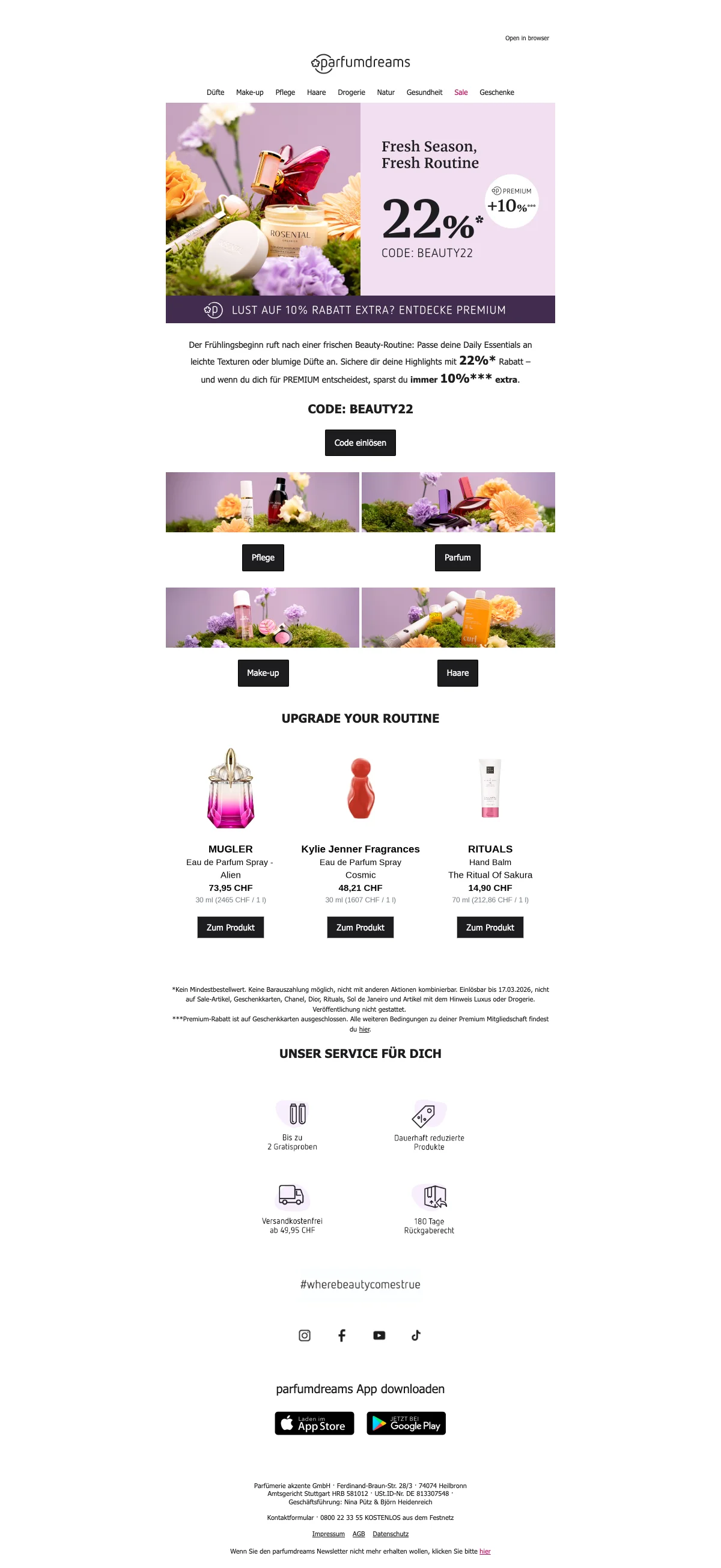 Parfumdreams 22% de réduction pour produits de beauté, offre exclusive