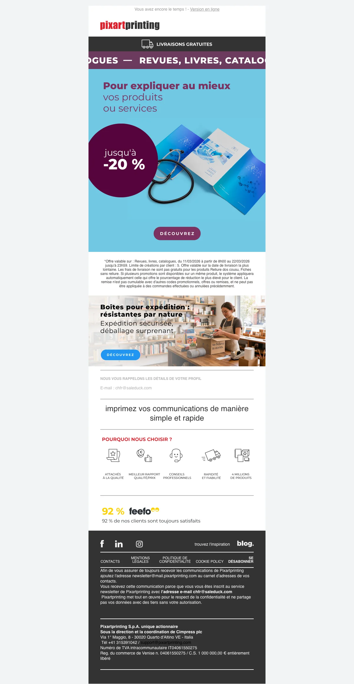 Codes promo Pixartprinting valides mars 2026