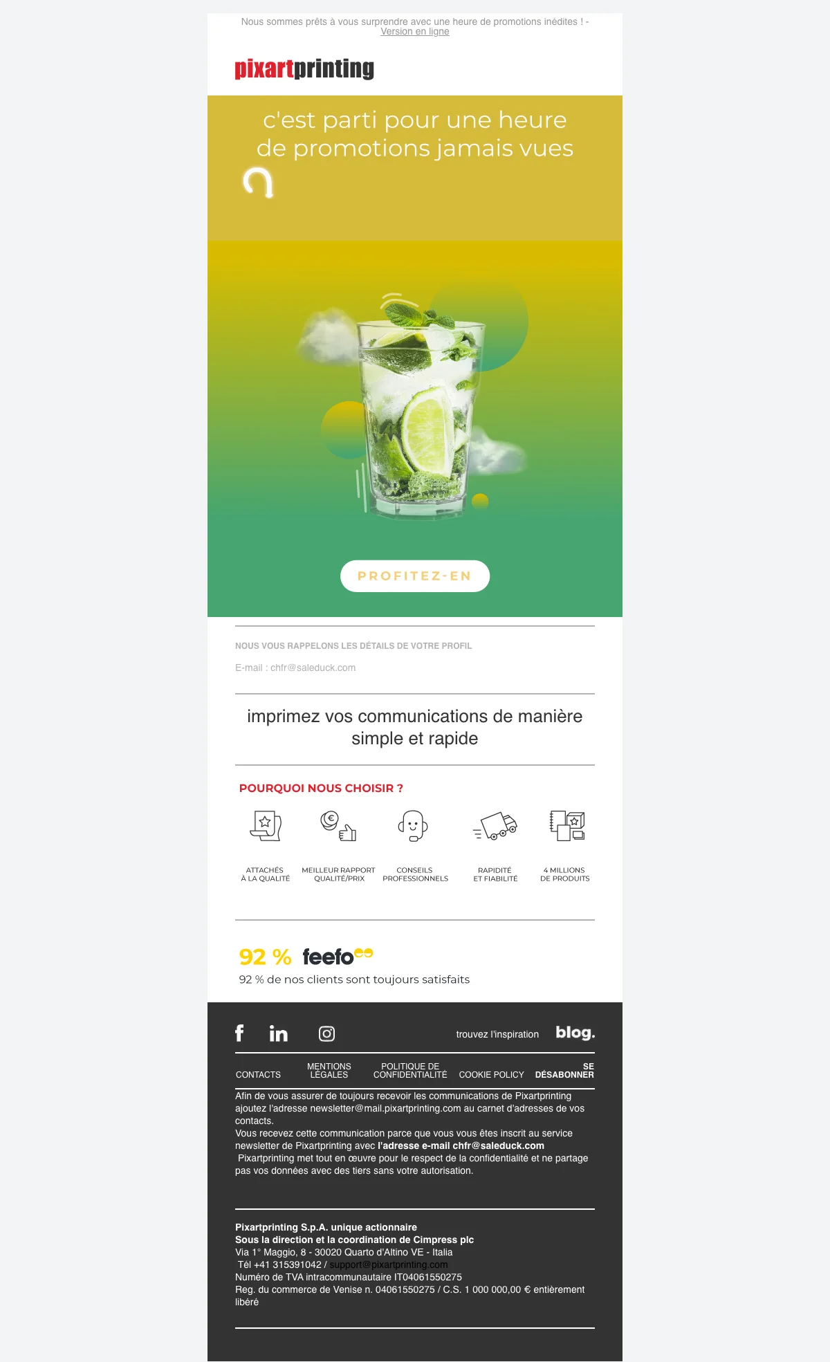 Pixartprinting Happy Hour offre flash — une heure de promos inédites