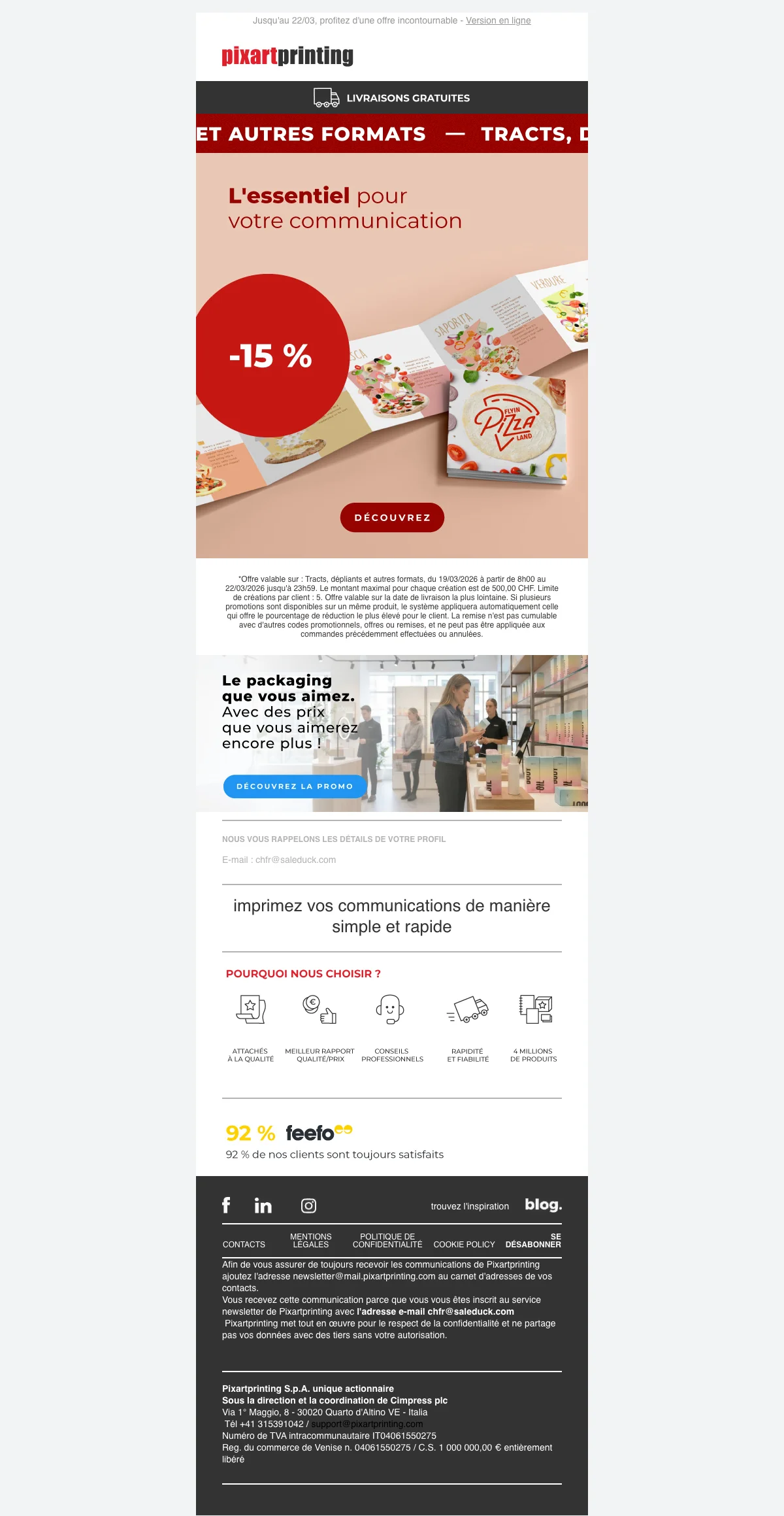 Pixartprinting suisse : livraison gratuite sur de nombreux produits