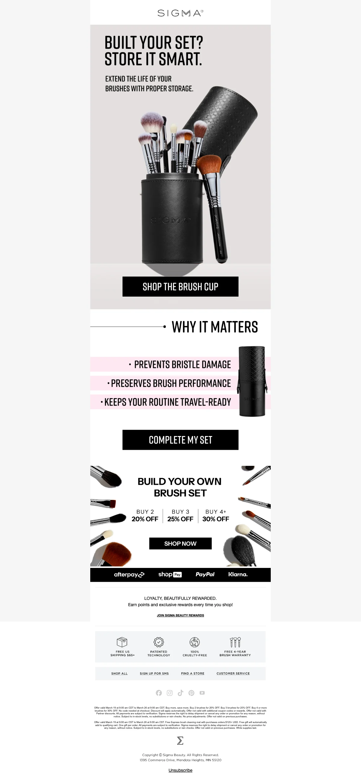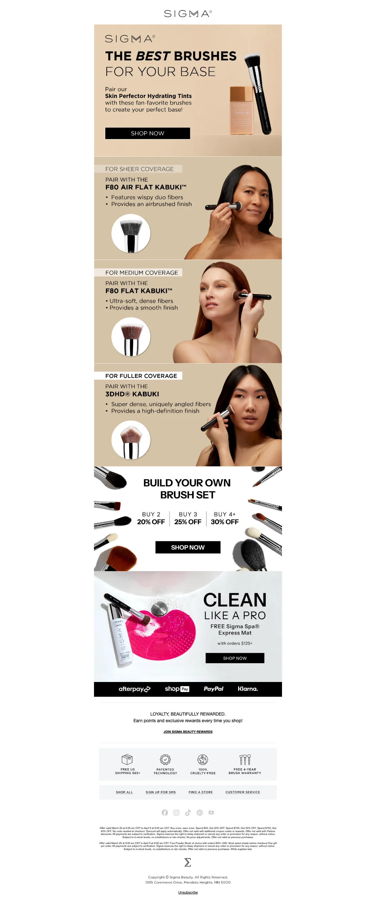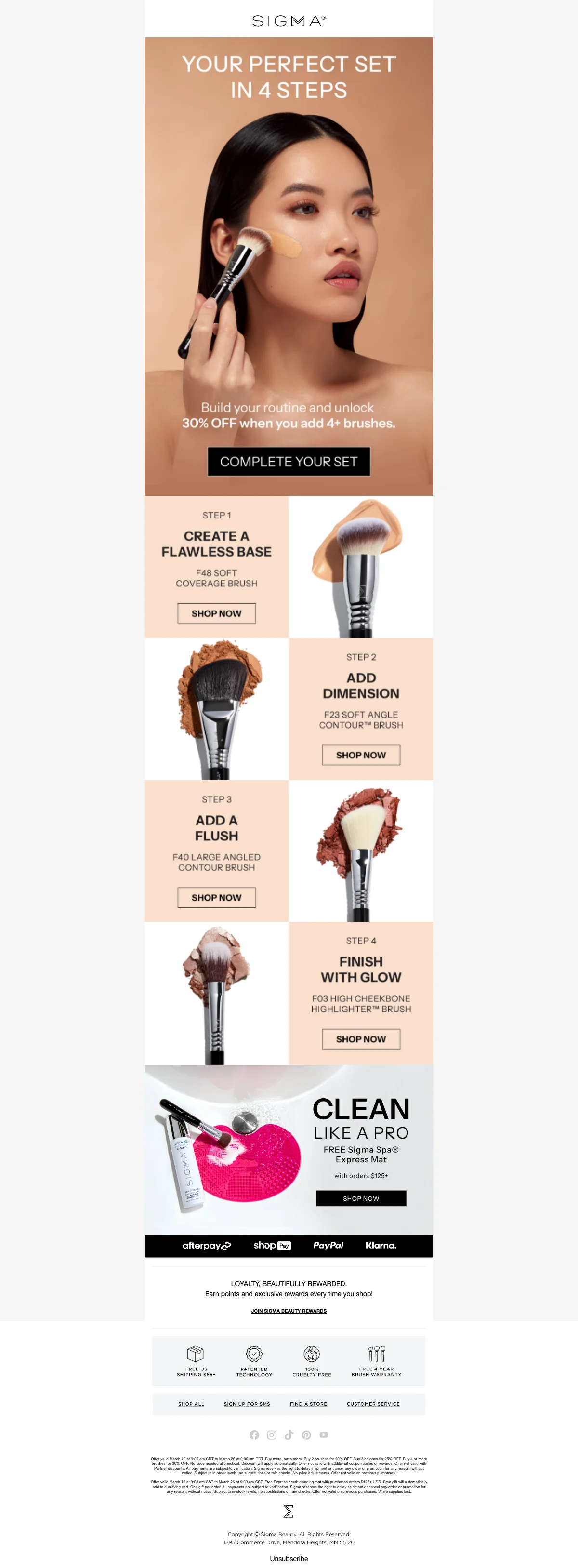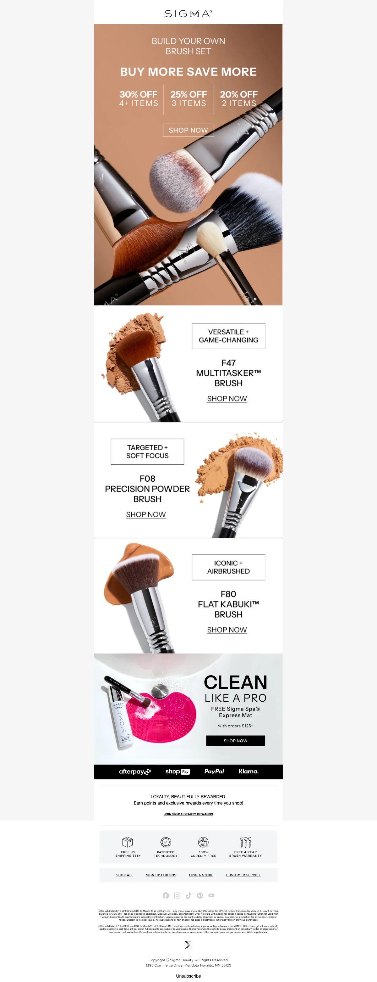Sigma Beauty kit de brosses achetez 2 20%, 3 25%, 4+ 30%